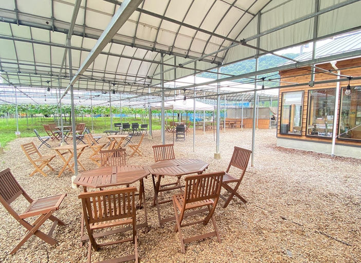 北房の水で育ったフルーツを使った季節のスイーツが人気の果樹園カフェです。